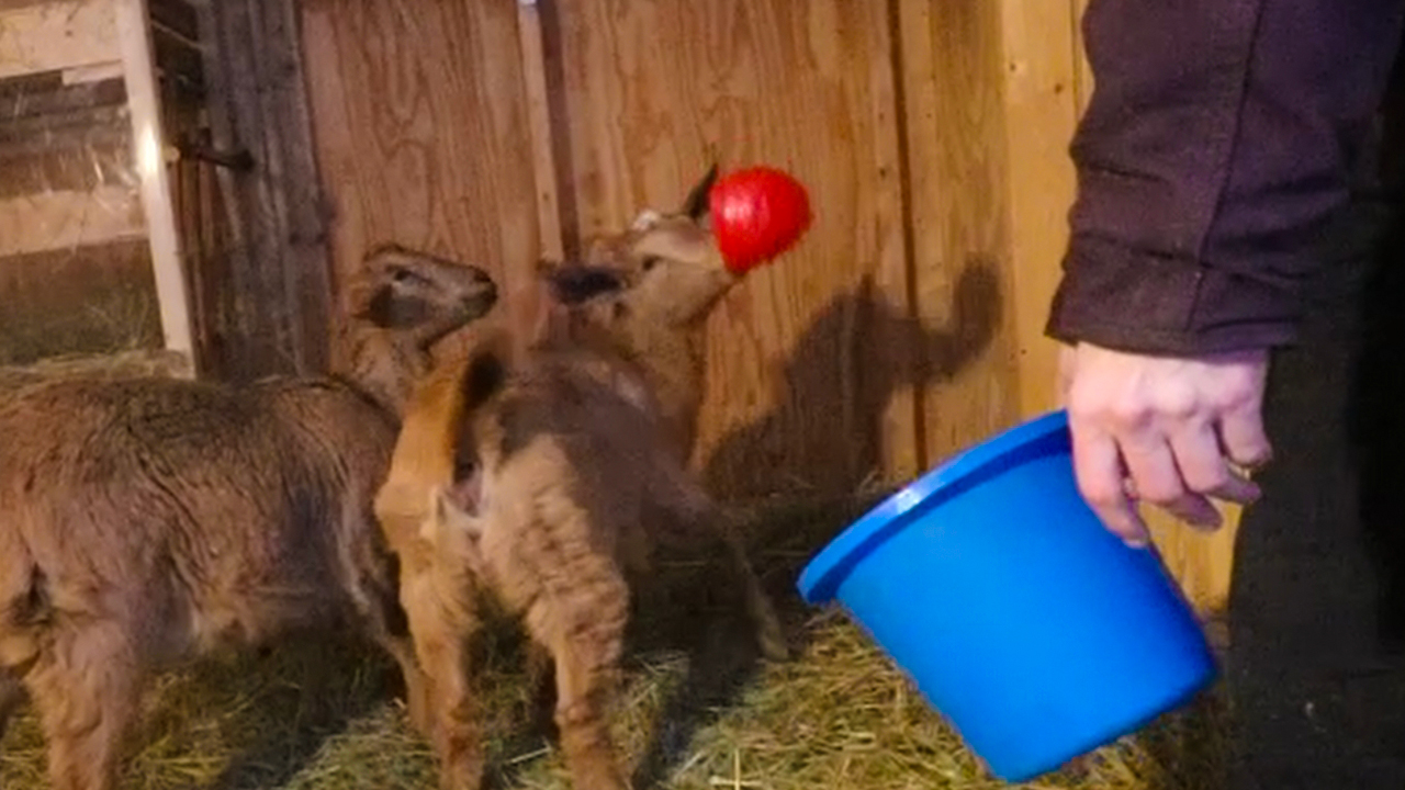 We were pleasantly surprised to learn after getting goats that they’re just as trainable as dogs. In this video, young goats Riggs and Fern play fetch, fighting to be the first to get the ball in the bucket to earn the treat.